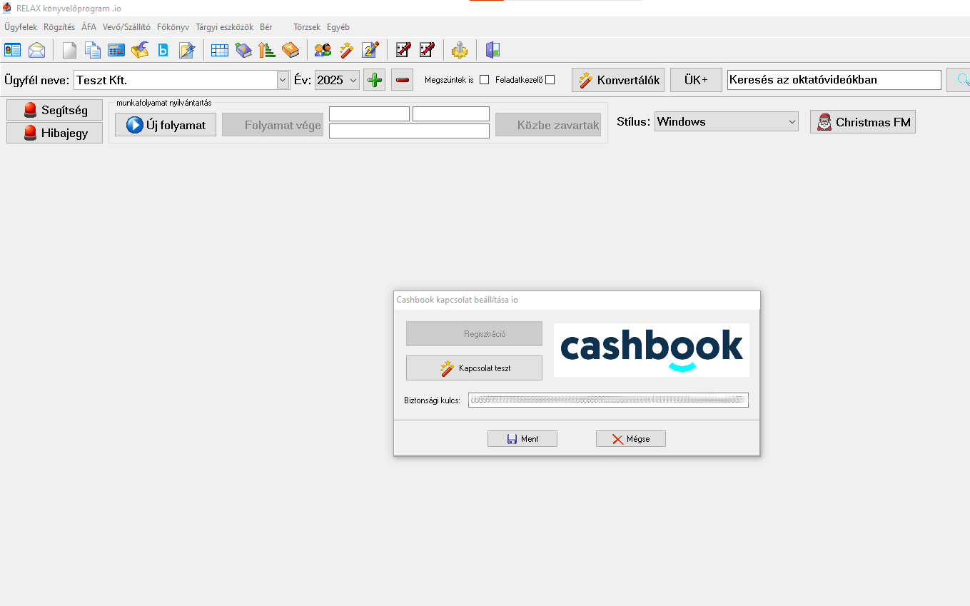 3. Másold ki a kulcsot, majd a könyvelő programodban nyisd meg az Ügyfelek / Cashbook könyvelőirodai beállítások menüpontot, és ott illeszd be a “Biztonsági kulcs” mezőbe!