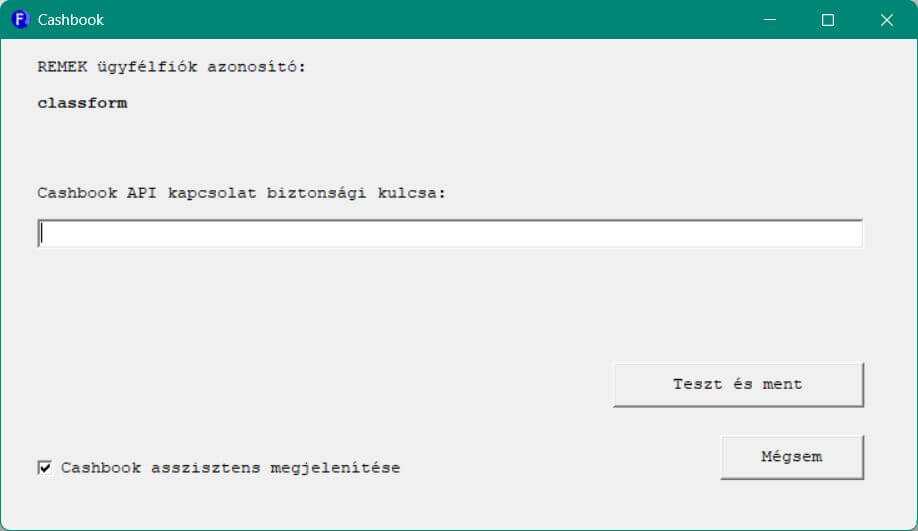 3. Másold ki a kulcsot, majd a könyvelő programodban nyisd meg a Cashbook menüpontot, és ott illeszd be a “Biztonsági kulcs” mezőbe!